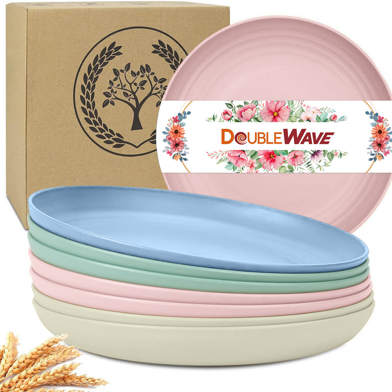 DoubleWave 8 inch Round Wheat Straw Plates (Set of 4) | Microwave Safe