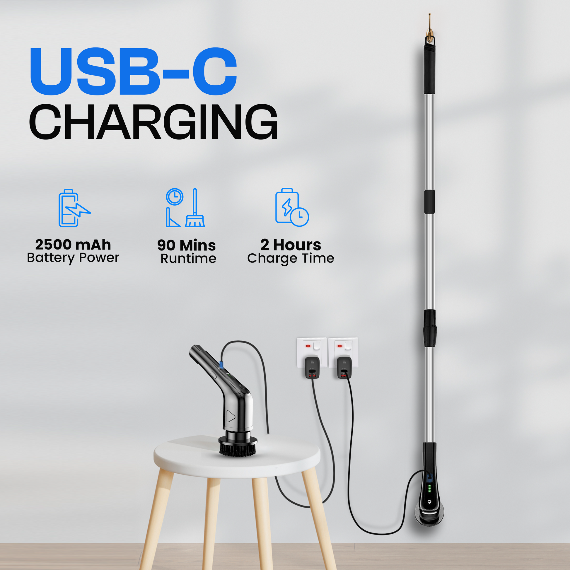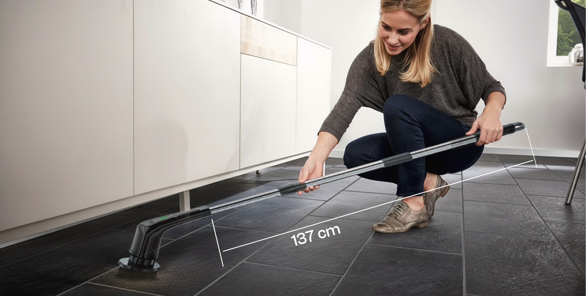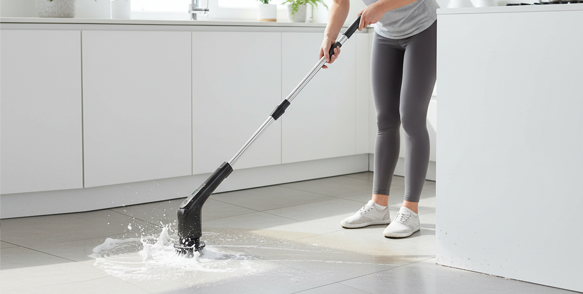 Clean tiles, glass, grout, and corners without strain. This cordless scrubber reaches every surface with strong rotating power.