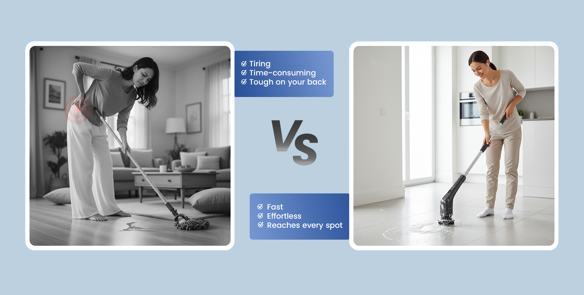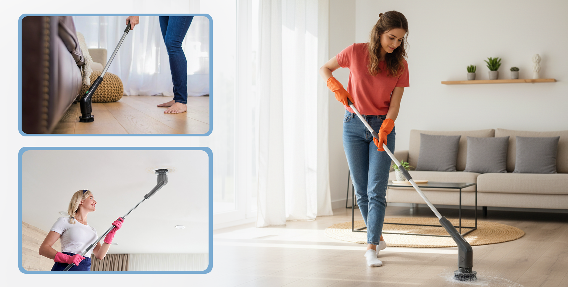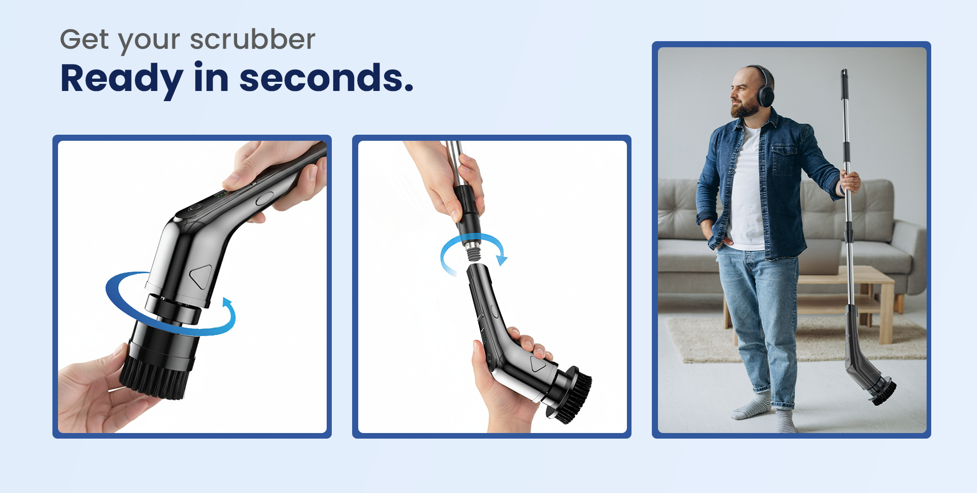Clean tiles, glass, grout, and corners without strain. This cordless scrubber reaches every surface with strong rotating power.