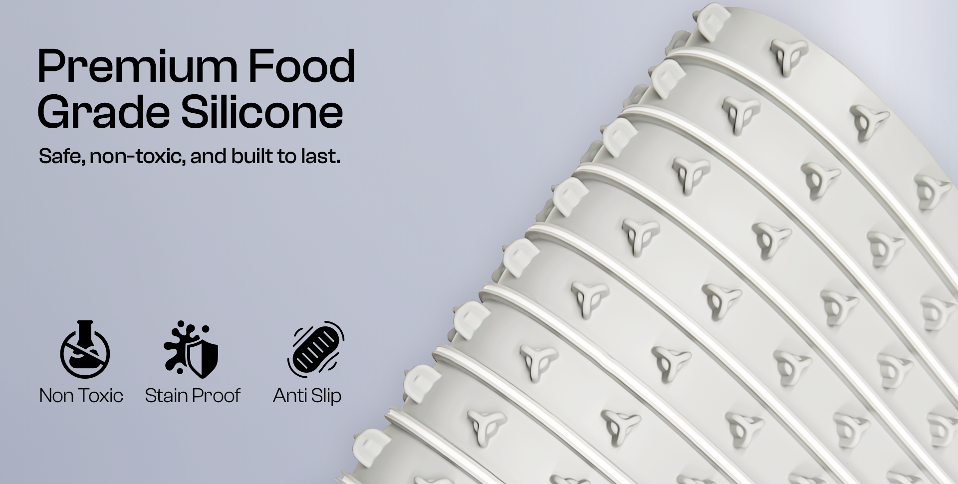 Cleaning is incredibly easy. Once the mat is cool, simply wipe the non-stick silicone surface with a damp cloth. The stain-resistant material ensures that even tough spills like sauces or gravies wipe away effortlessly.