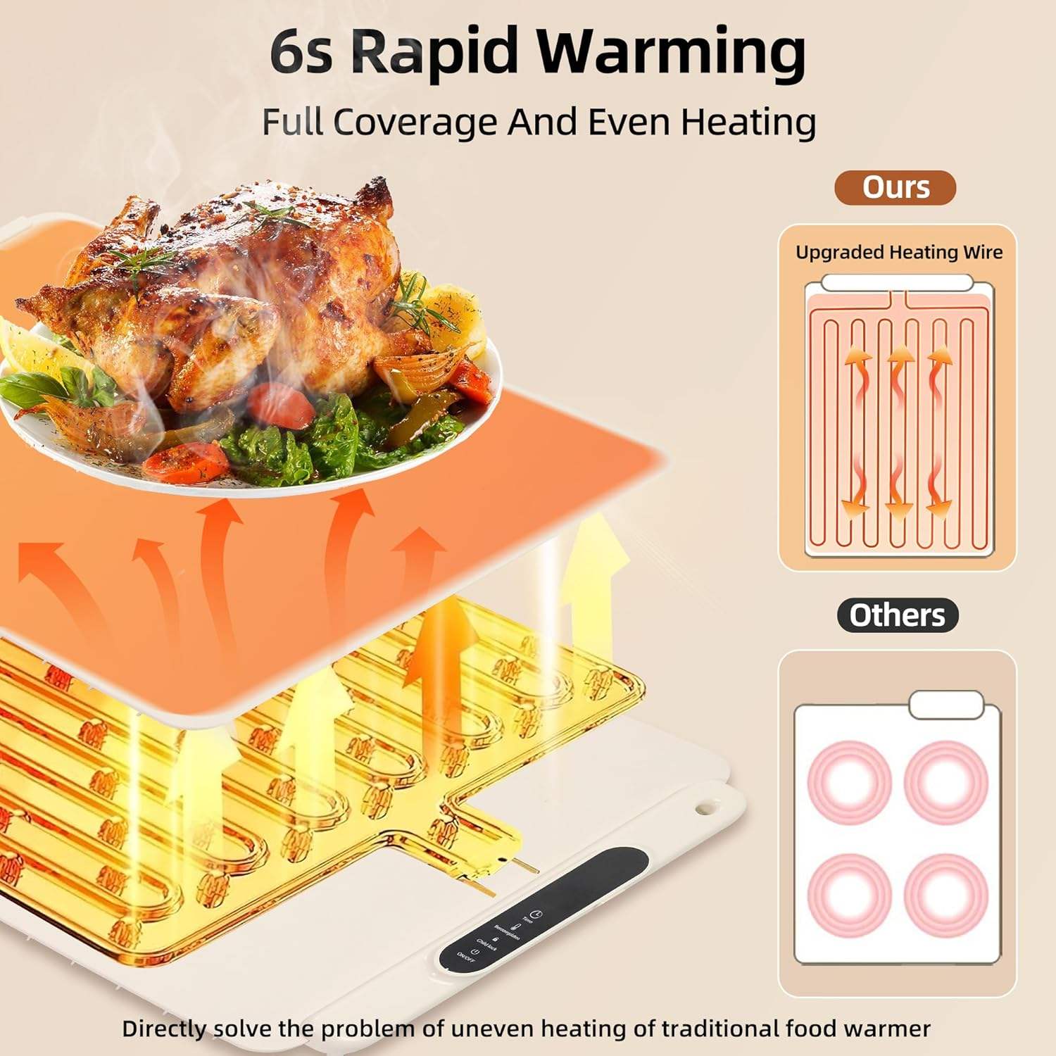 Electric Warming Mat Ideal for Buffets, Family Dinners, Holiday Feasts, Potlucks, Pizza, Takeout, and More