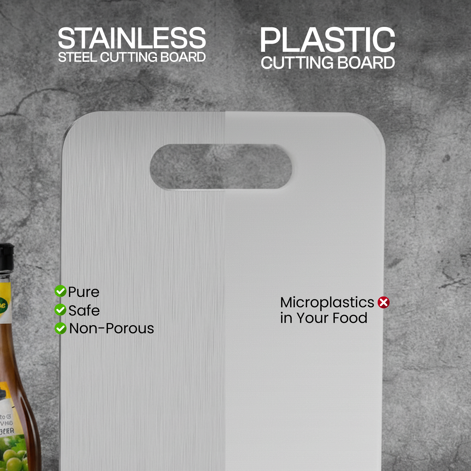 Plastic boards seem cheap, but they come with hidden risks. Our Stainless Steel Cutting Board is the smarter, cleaner, and more durable choice for your home.