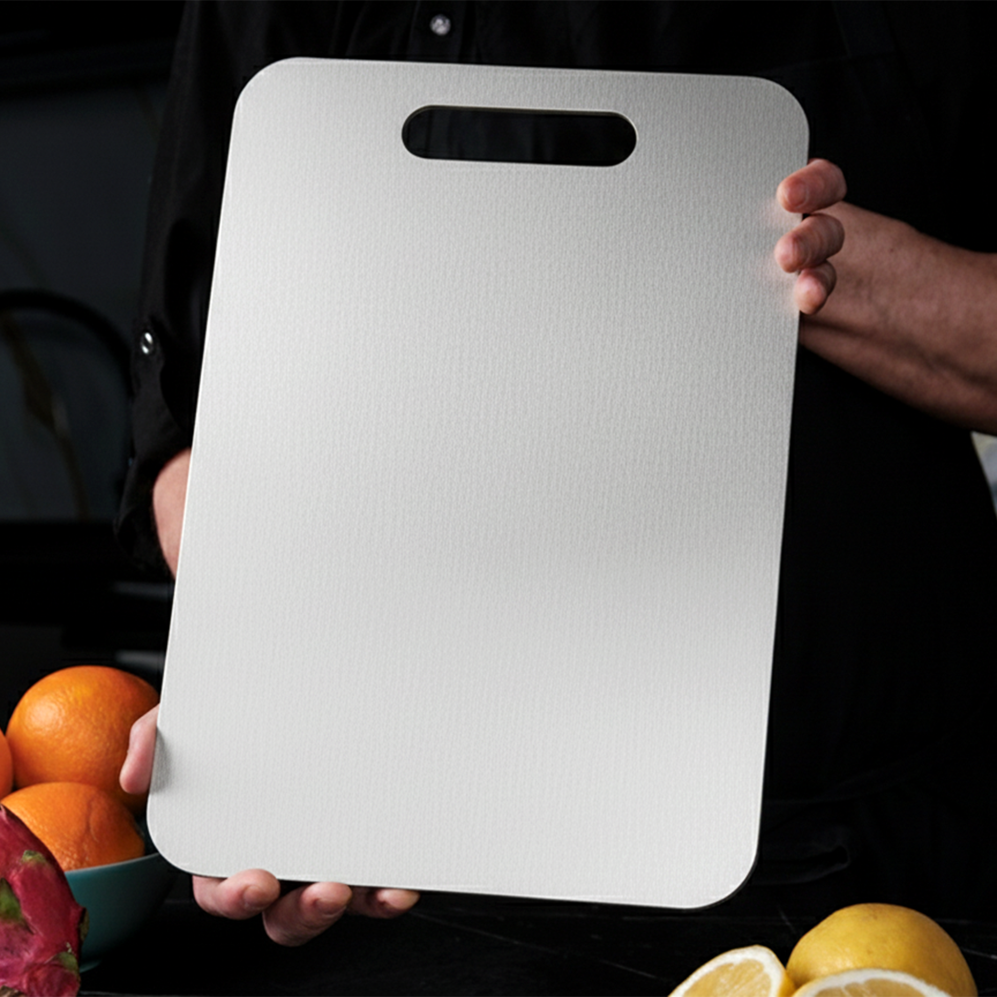 A steel board is a much better choice. Plastic boards get knife scars that can trap germs and shed tiny microplastics into your food. A steel board stays clean and does not add anything unwanted to your meals.