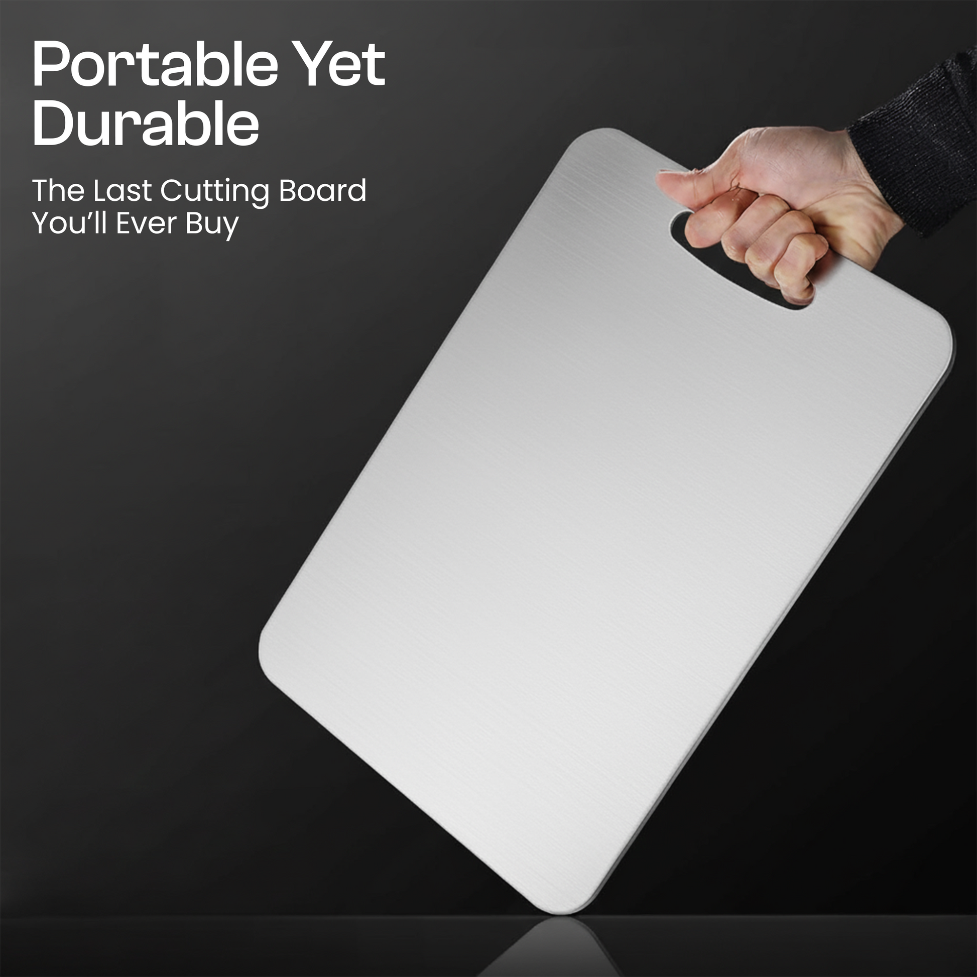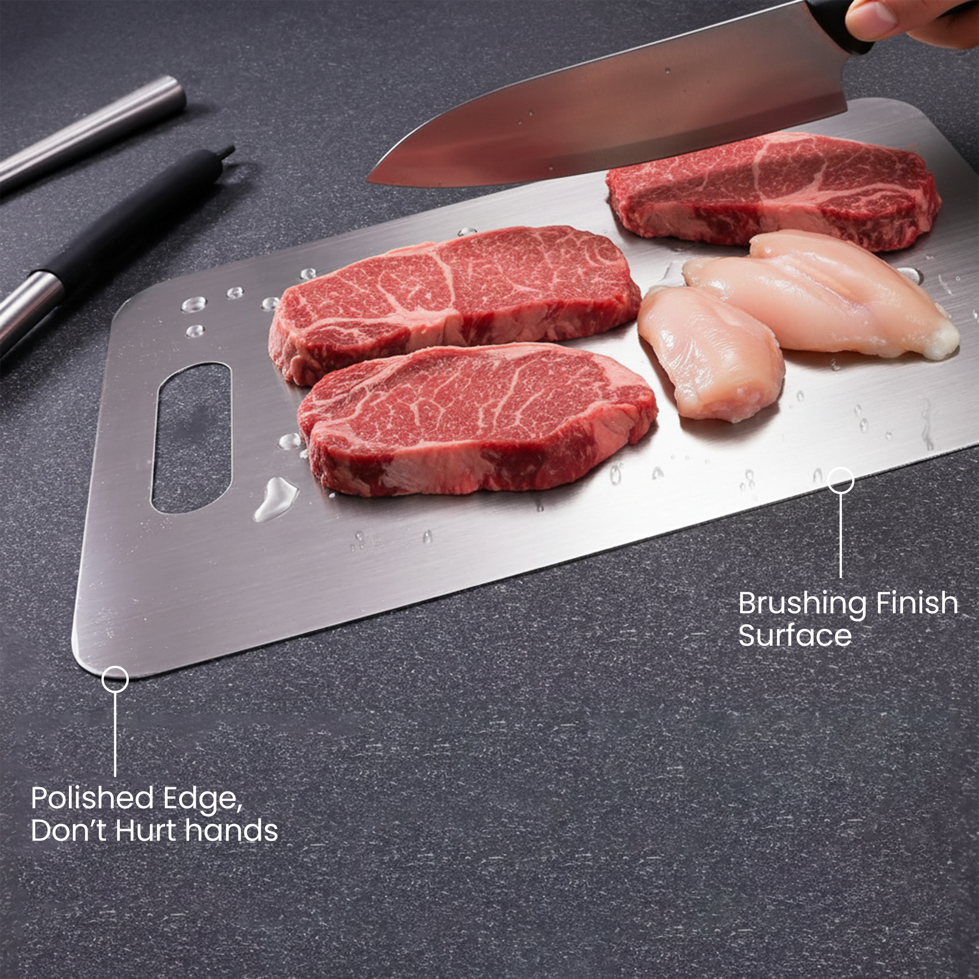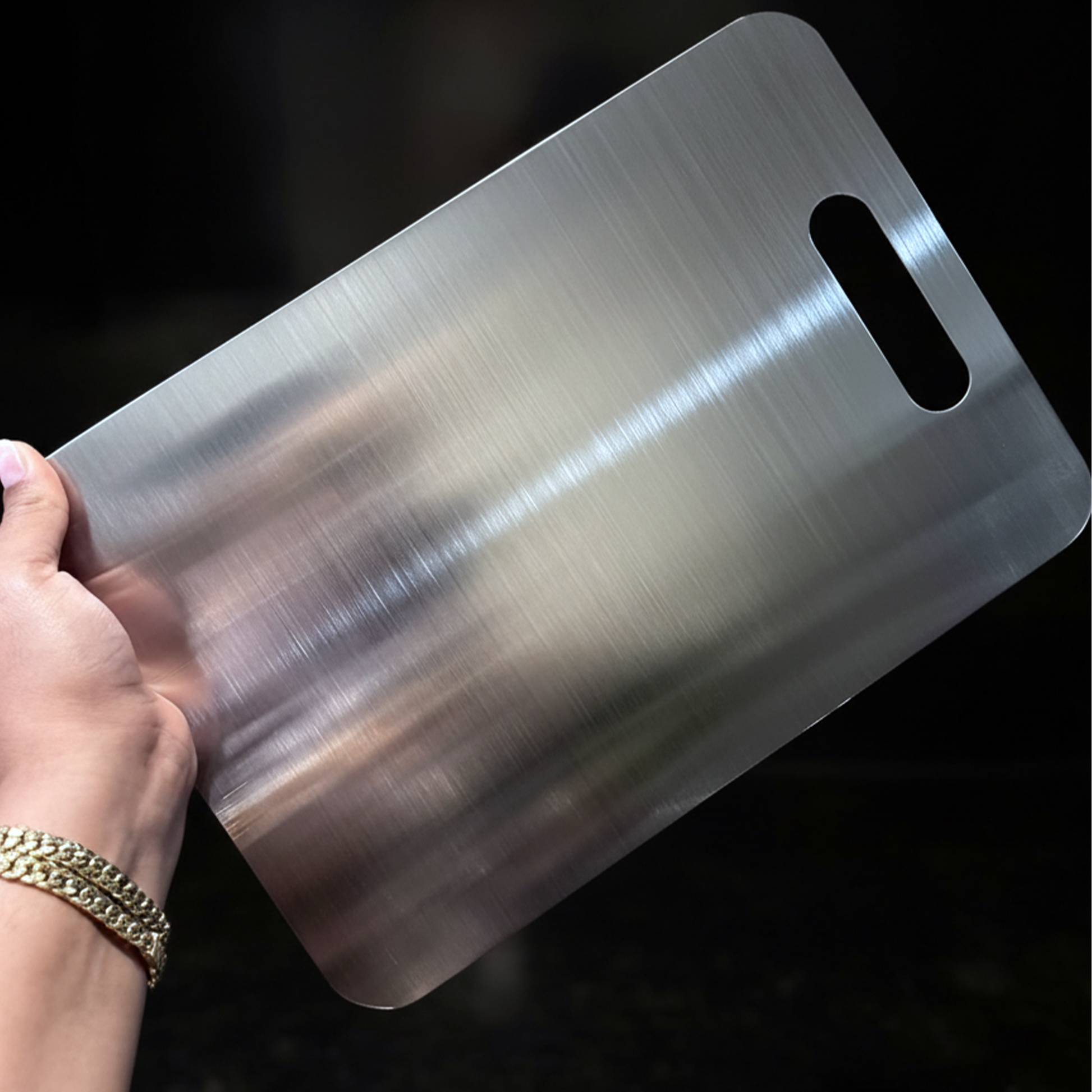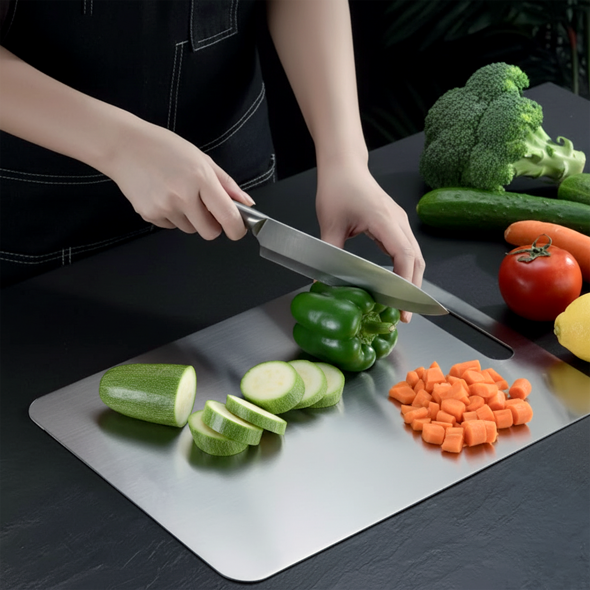 Our board is made from one solid piece of food-grade stainless steel. Unlike wood or plastic, it has nowhere for germs to hide. This keeps your food clean and your family safe from bacteria. Use one side for raw meat and the other for veggies to prevent any mix-ups.