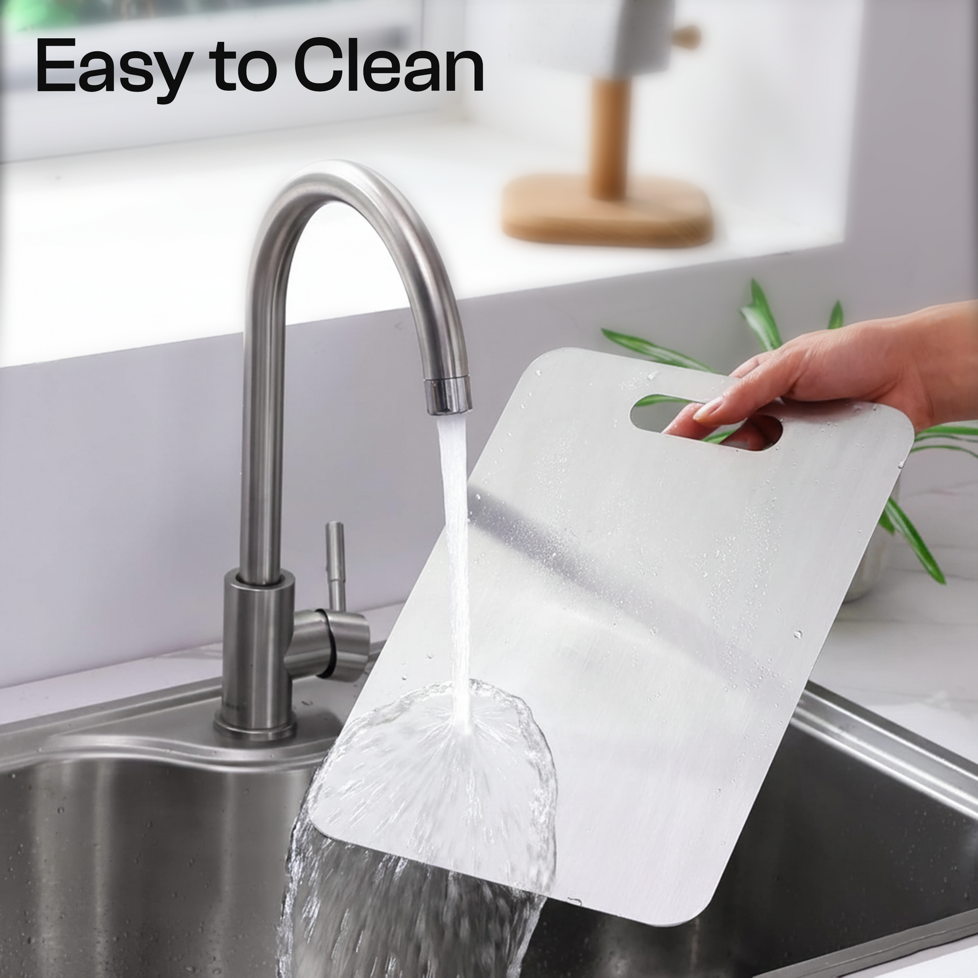 No More Microplastics: Plastic boards can shed tiny, unseen particles into your food. Our steel board is pure and solid, which means your food always stays clean and safe to eat.